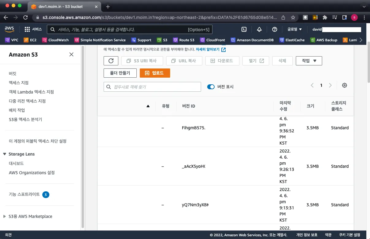 이는 S3 사용량을 증가시키는 부분이고 비용 증가가 되는 부분이기 때문에 객체(파일)에 대한 버전 기능이 꼭 필요한지 논의가 필요한 부분입니다.