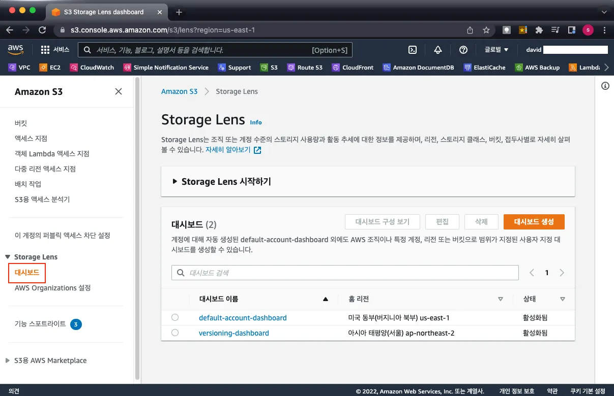 이는 S3에서 Storage Lens 기능에서 확인할 수 있고 Lens 기능을 활용하려면 AWS Console 로그인을