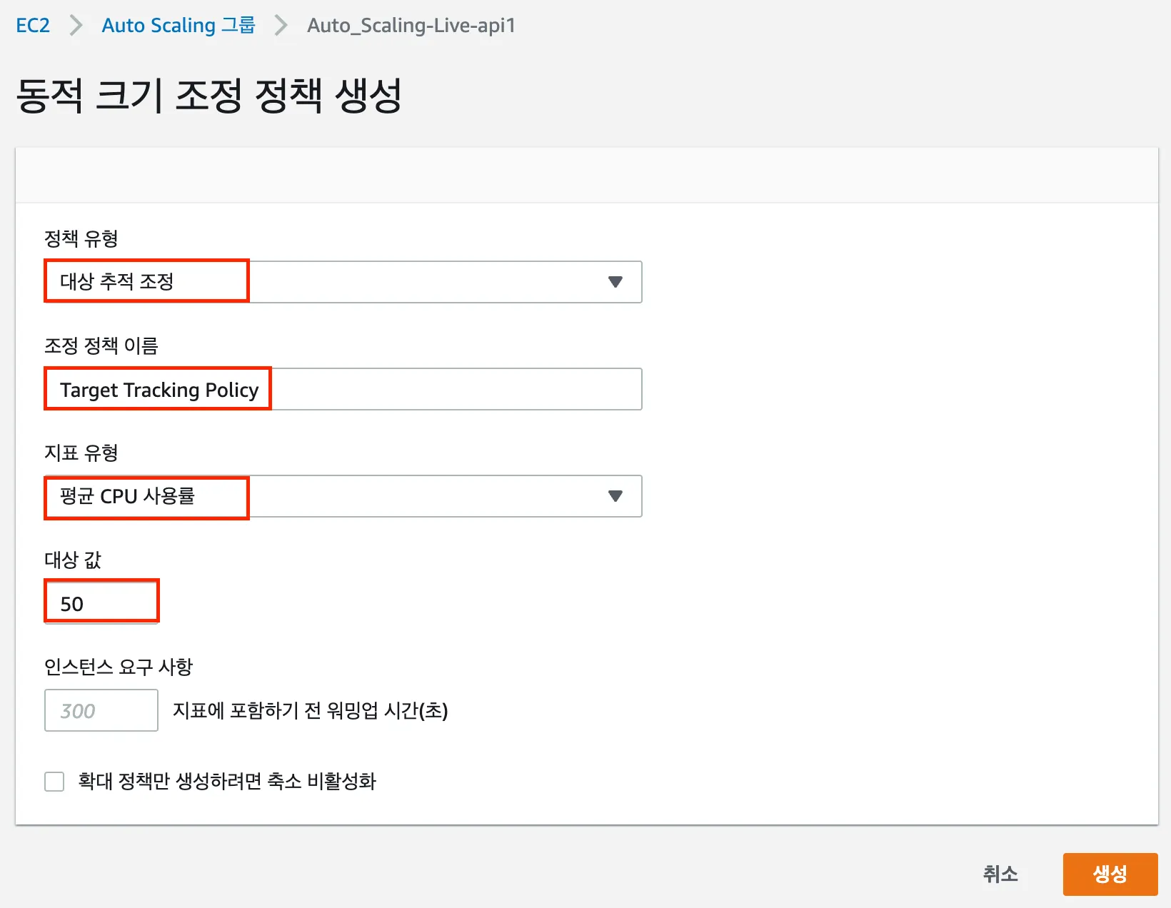 동적 크기 조정 정책 생성-2