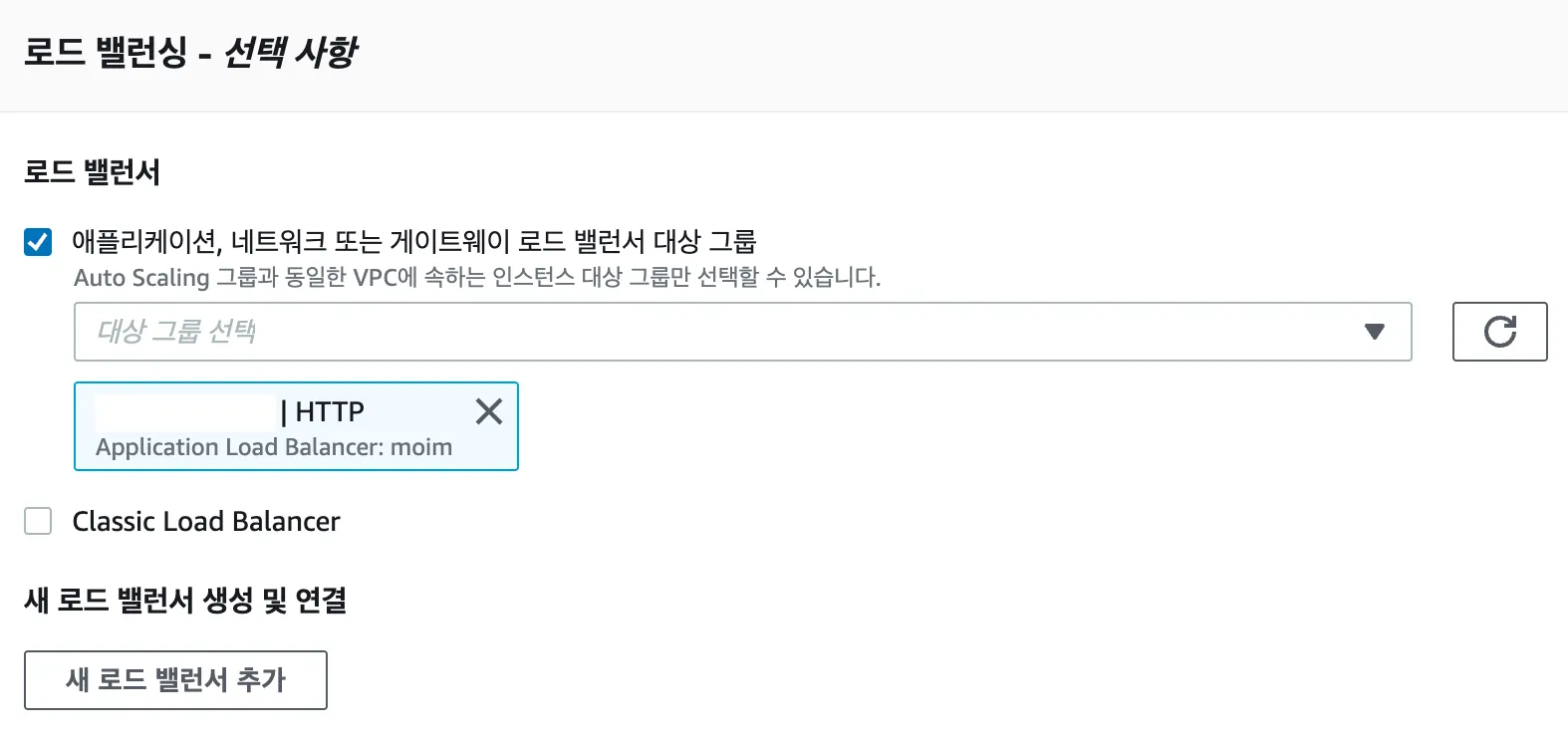로드 밸런싱 - 선택사항 (해당 인스턴스가 속해야 할 Target Group을 지정합니다.)