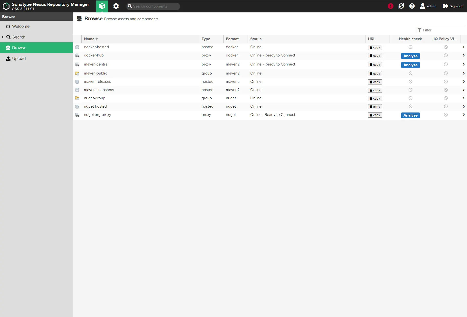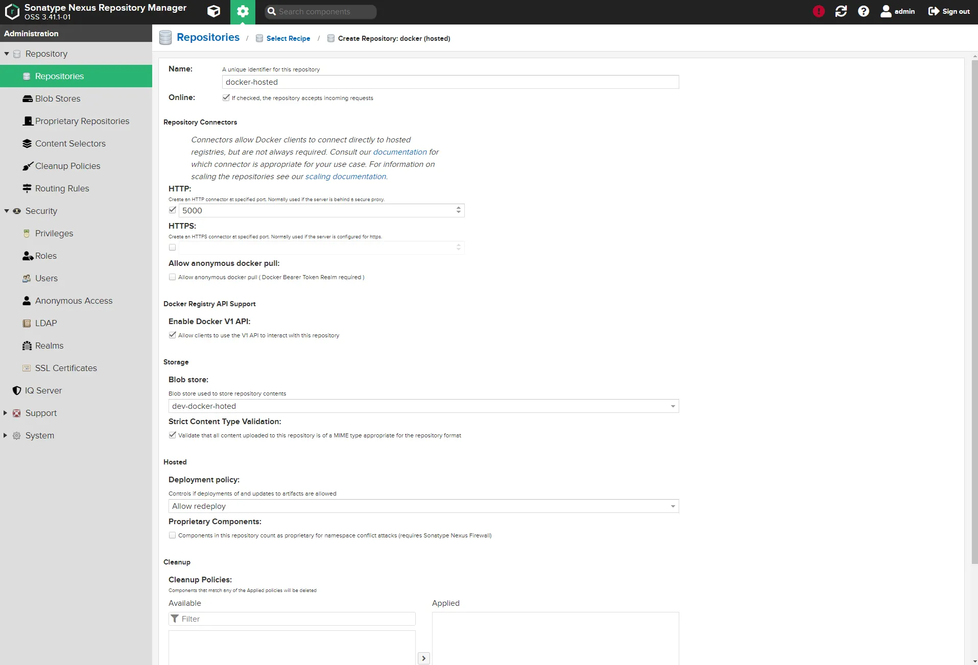 $ docker run --name nexus -d -p 5000:5000 -p 8081:8081 -v /nexus-data:/nexus-data -u root sonatype/nexus3