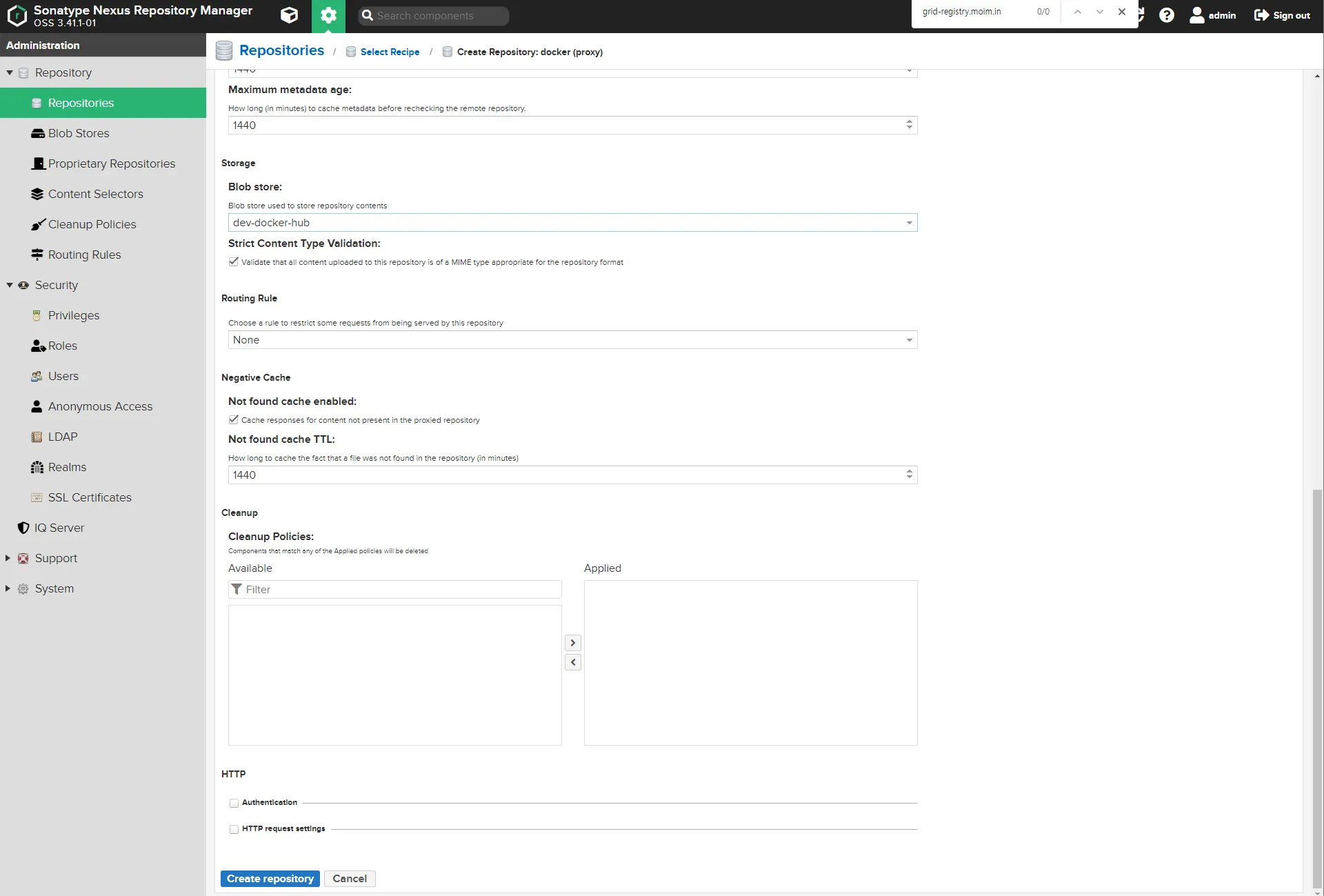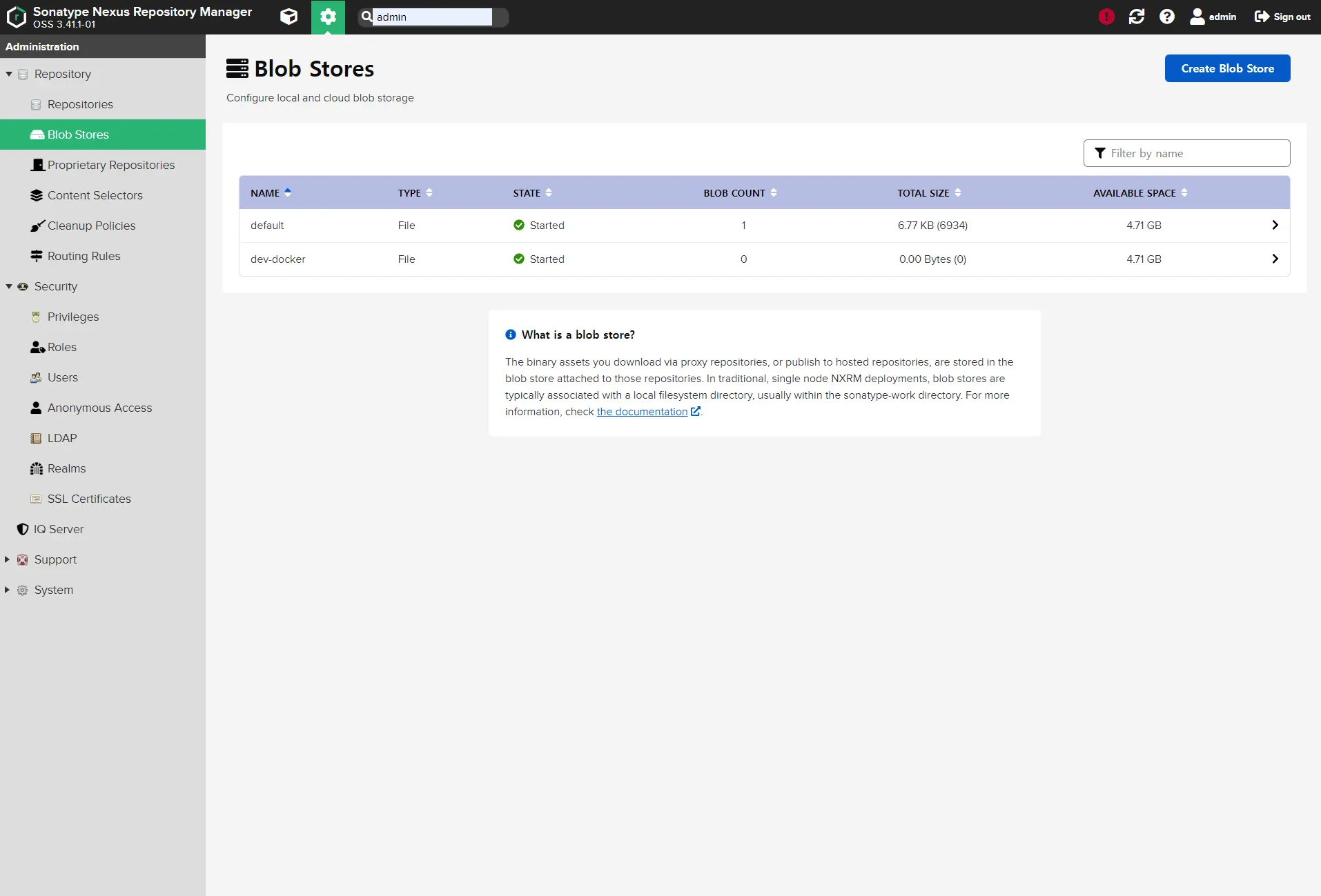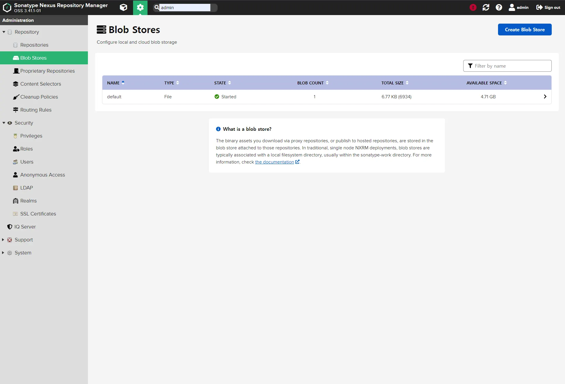 톱니바퀴 → Repository → Blob Stores → Create Blob Store