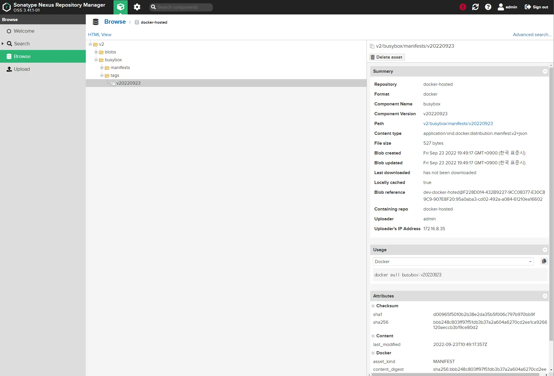 $ docker push 172.16.8.35:5000/busybox:v20220923