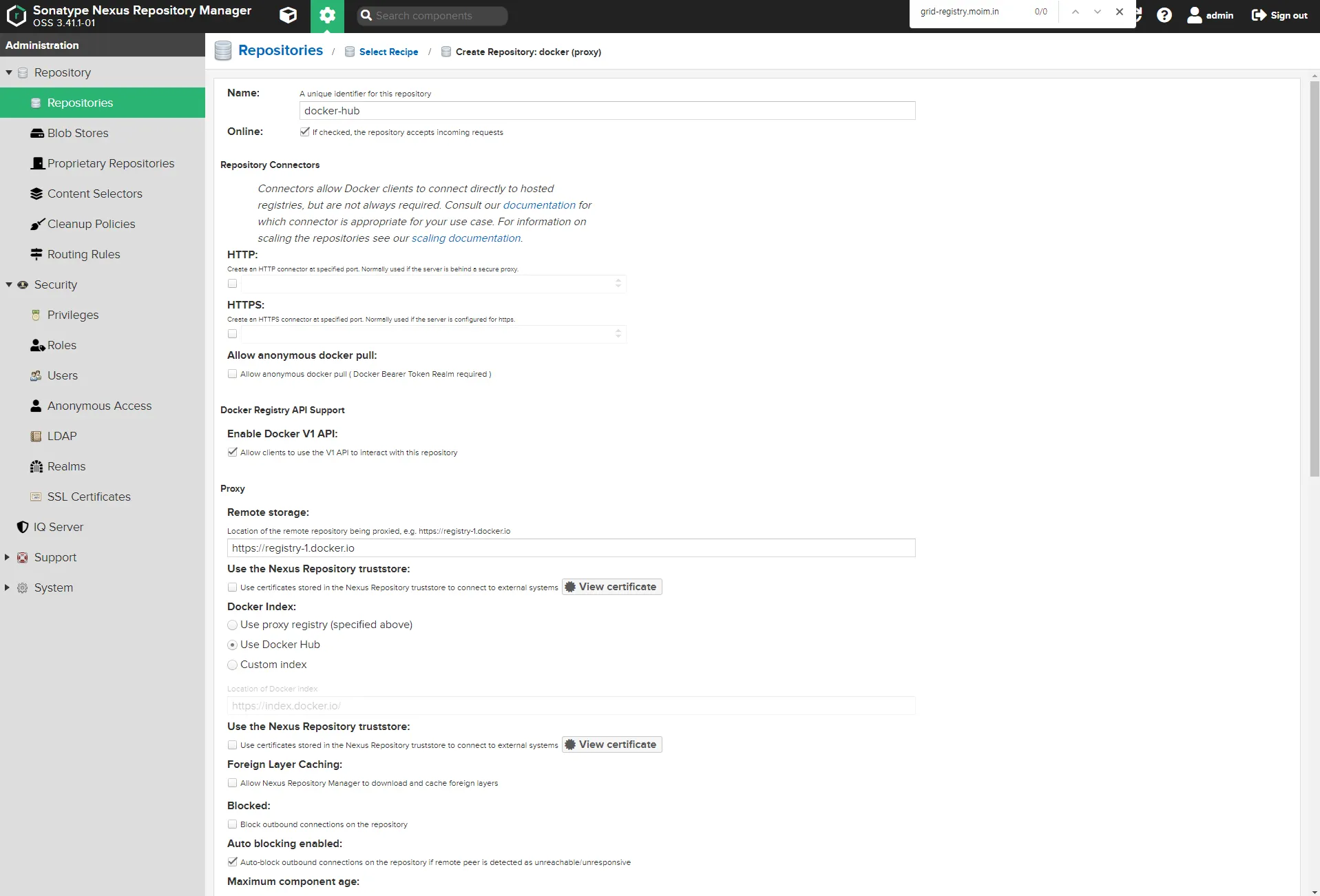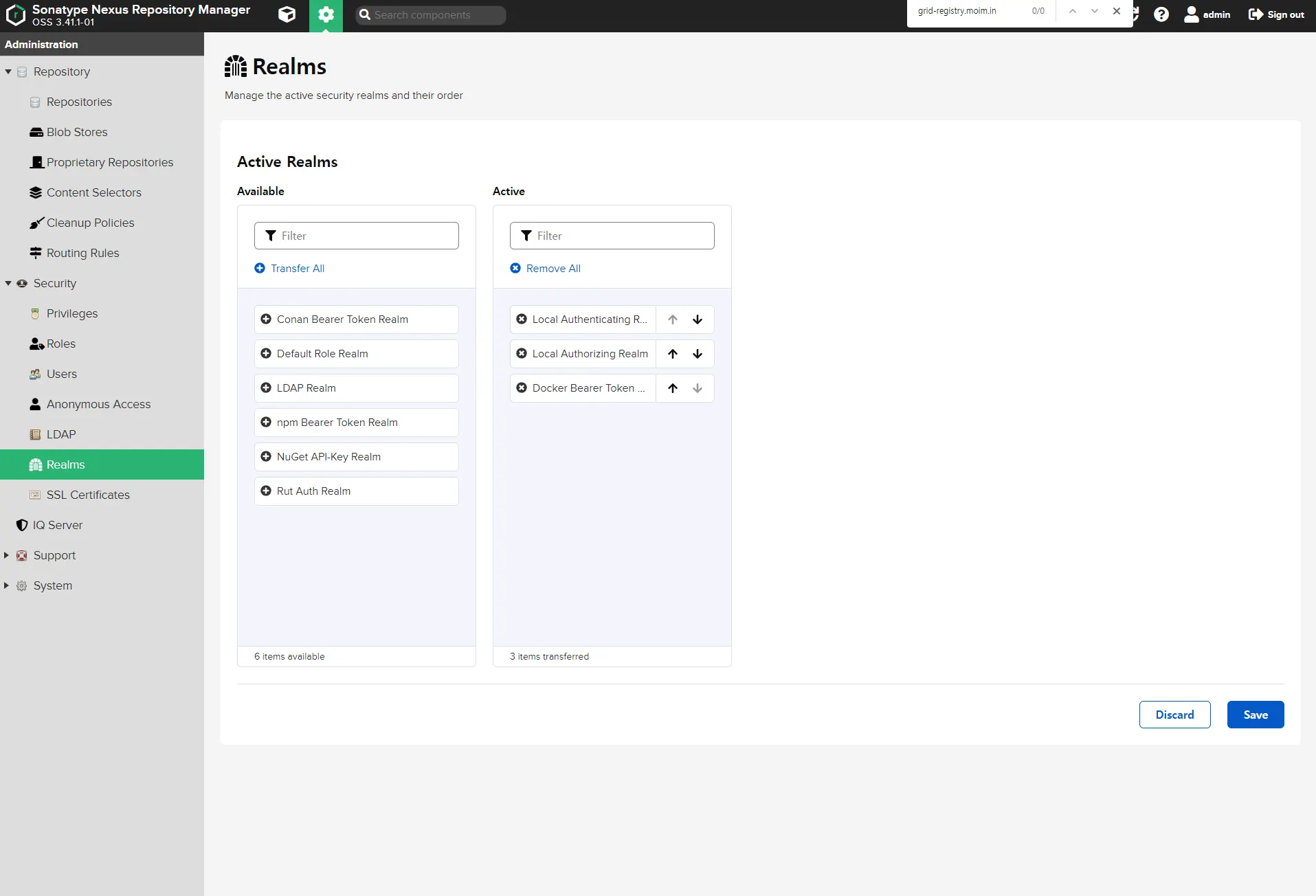 톱니바퀴(관리 콘솔) → Security → Realms → Docker Bearer Token Realm 선택 후 Save 선택