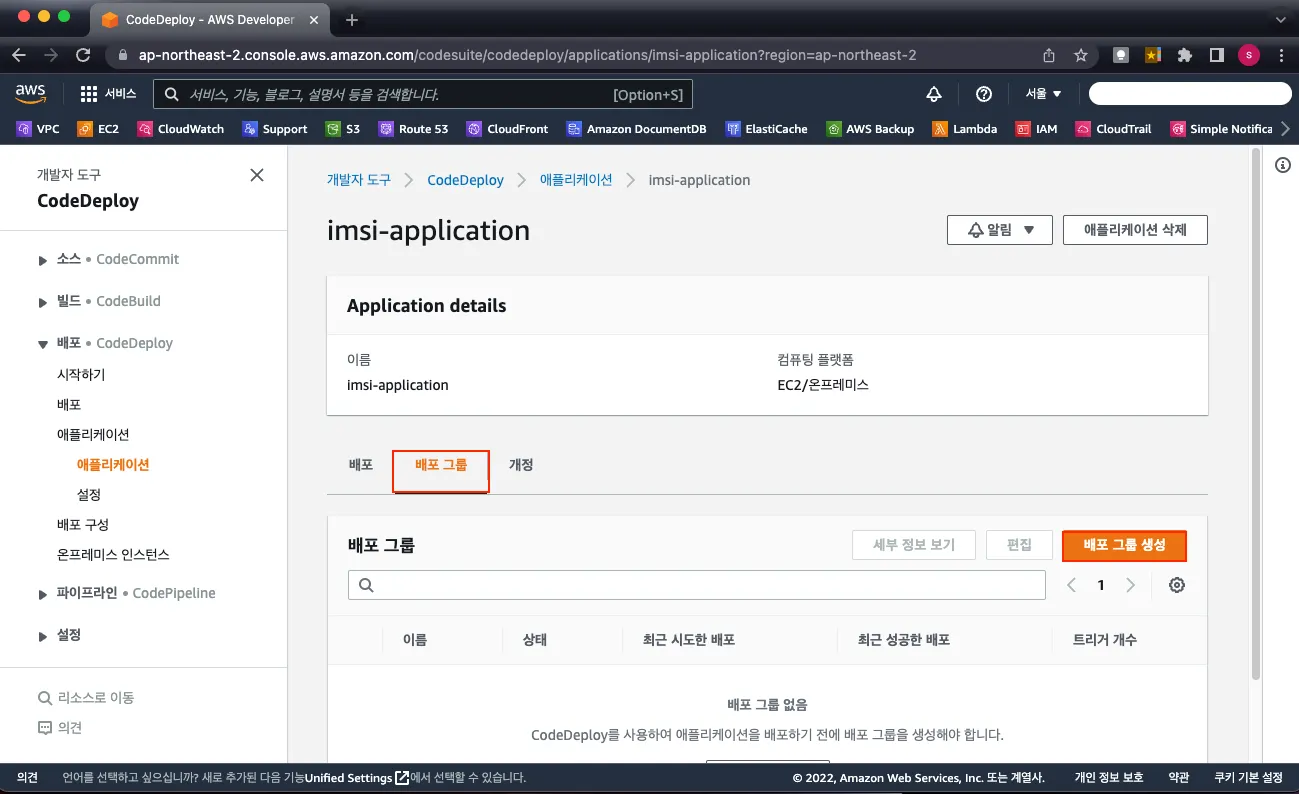 CodeDeploy를 이용한 배포 방법은 Application 생성 - 배포 그룹 생성 - 배포 이렇게 진행이 되기 때문에