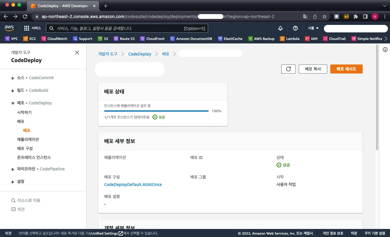 - 배포 설정 : CodeDeployDefault.AllAtOnce